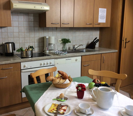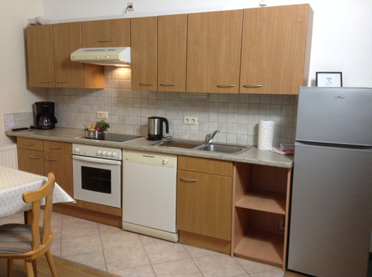 A Kitchen with full equipment, dishwasher, coffeemaker, waterheater and one sofa bed, a Sitting corner, free W-Lan, enter-room.